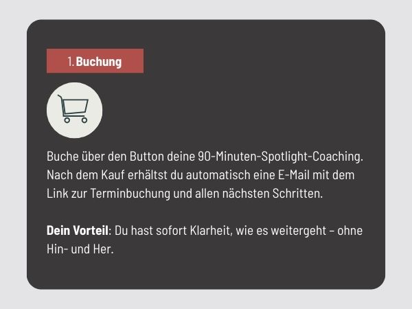 • Plus To-do-PDF nach dem Call – mit konkreten nächsten Schritten, Prioritäten und klarer Reihenfolge: erst Struktur, dann Wirkung.